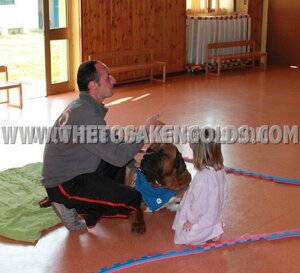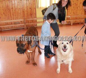 Ho permesso di tenere al guinzaglio il mio tosa Eyshin a Ricky,(foto con maestre e anche la golden r.) IL BIMBO SPECIALE, che nel suo autismo, all'inizio aveva paura....poi potete veder voi stessi il risultato a fine lezione.