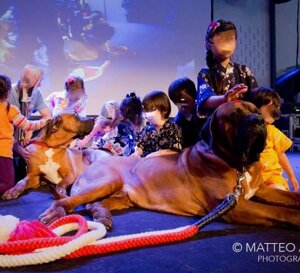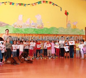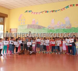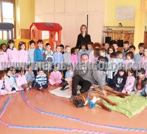 Queste foto sono il risultato della fiducia dimostrata verso di me e verso i miei cani da parte di amici "appassionati veramente in una sana e utile cinofilia" come Maria Grazia Miglietta. GRAZIE !!! ...e un ringraziamento SPECIALE a Serena Fiorilli per la disponibilità e i consigli! ...e infine, ma non meno importante, GRAZIE DI CUORE AI MIEI CANI..soprattutto al mio amato(come ogni mio cagnone) Eyshin Tosakengold's, il PRIMO E UNICO TOSA AL MONDO a entrare in una scuola: questo dimostra tutta la mia passione e l'impegno in questi 15 anni di sana selezione psicofisica, IMPEGNO spesso non altrettanto apprezzato invece in molte esposizione cinofile, nonostante tutti i titoli di Campione dei miei tosa. Grazie Maria Grazia per questa opportunità.Più di 20 di questi 60 bimbi all'inizio avevano timore ad avvicinarsi al mio tosa(per la grandezza), andavan solo dalla mia golden retriever EDA.....a fine lezione non riuscivo più ad allontanarli da lui, ognuno voleva tornare a fargli una coccola! GRANDE, GRANDE SODDISFAZIONE, emozioni che solo bimbi e cani sanno DONARE.