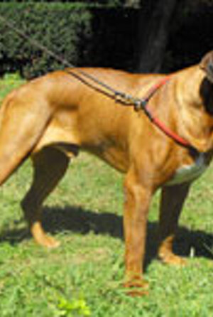 La sua muscolatura è possente, dolce come la madre e la testa del padre, la maschera è scura, il suo colore è il rosso di Loren e l'equilibrio caratteriale di entrambi, semplicemente fantastica!